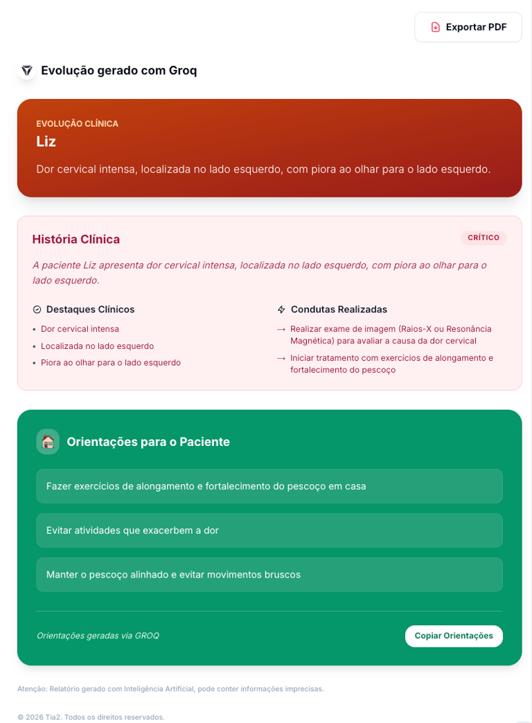 Facilite seu dia a dia e tenha em mãos uma assistente para gerar a evolução dos seus atendimentos e orientações para seus pacientes.